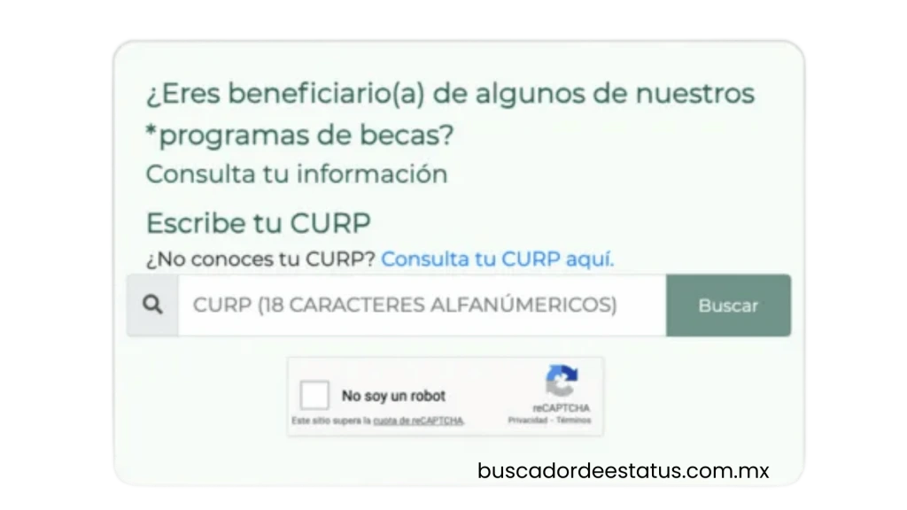 - En caso de no conocer tu CURP, el propio buscador ofrece la opción de consultarlo en su plataforma.