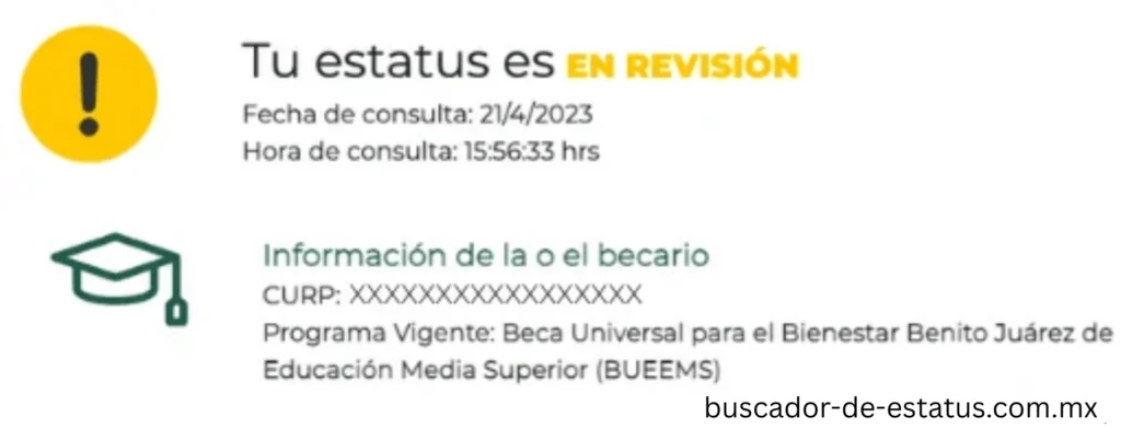 Cuando tu estatus aparece como “EN REVISIÓN”, significa que aún se está comprobando la inscripción del estudiante en el ciclo escolar actual. En este escenario, es importante consultar tu Buzón de Mensajes dentro del mismo buscador, ya que ahí se detallan las indicaciones sobre: